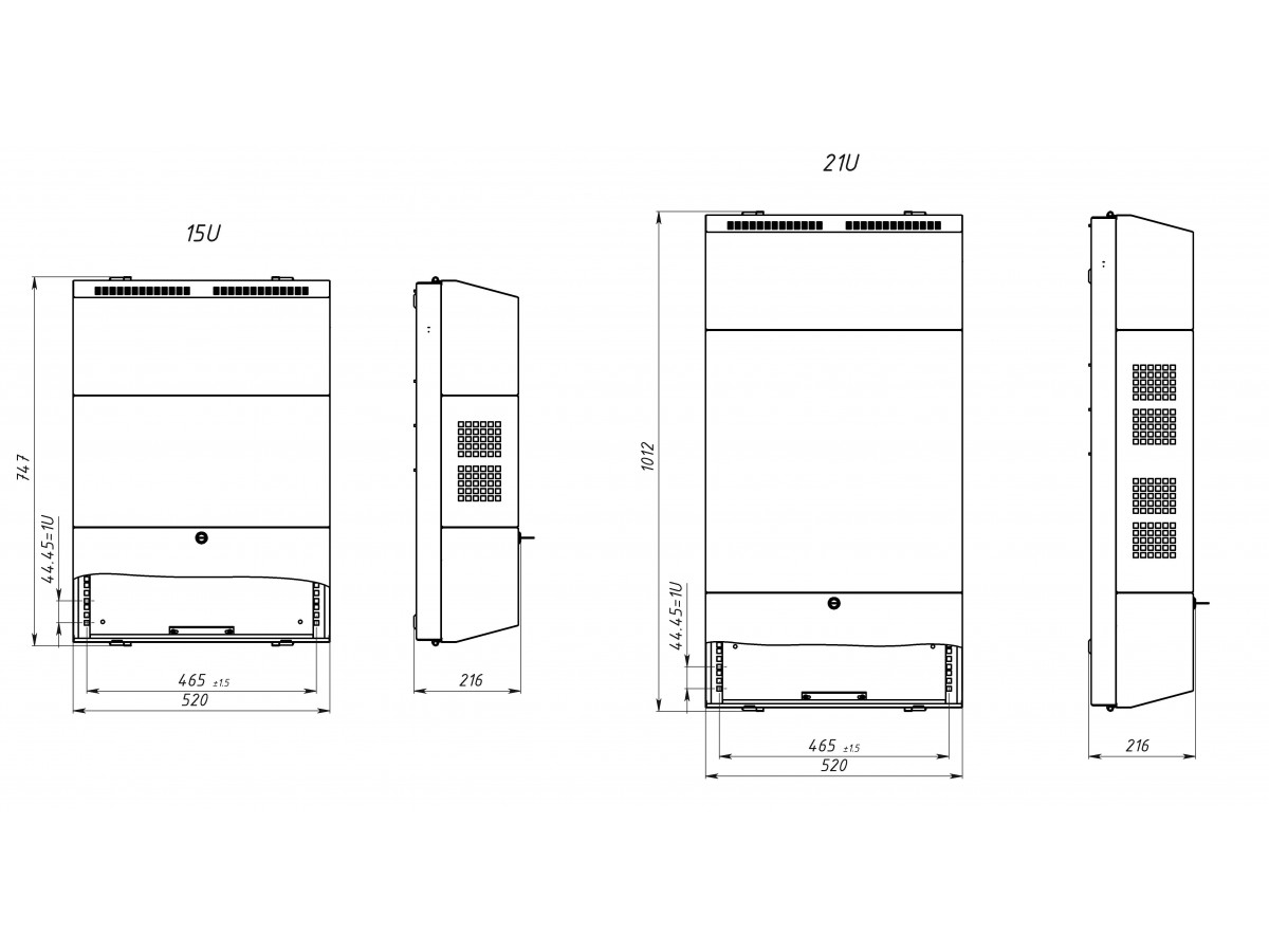 * - При вертикальном размещении шкафа рекомендуется 19" блоки крепить сверху на 19" профиля для того, чтобы при необходимости была возможность вынуть необходимый блок влево или вправо без демонтажа других блоков. При этом крепежные основания 19" профилей должны быть ориентированы вниз по той же причине.