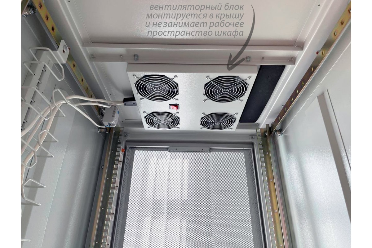 Установленный вентиляторный блок в крыше шкафа 4 осевых вентилят