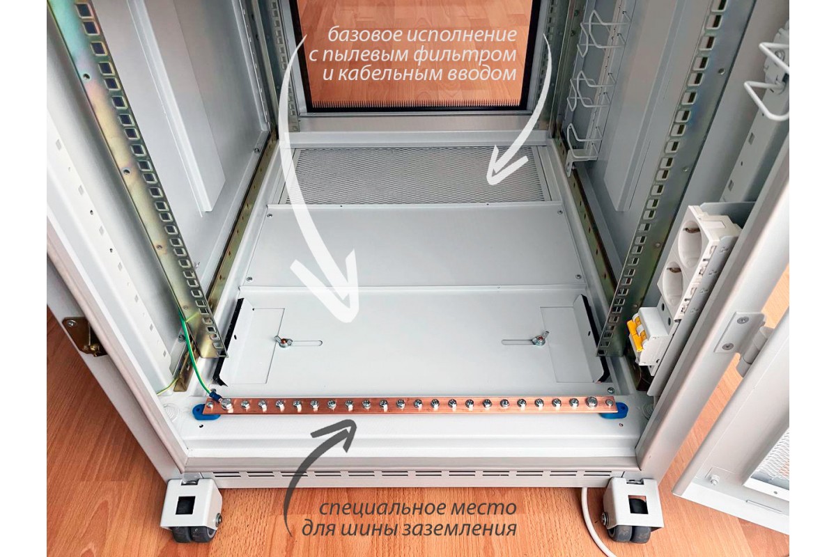 Нижний цоколь шкафа с установленным пылевым фильтром