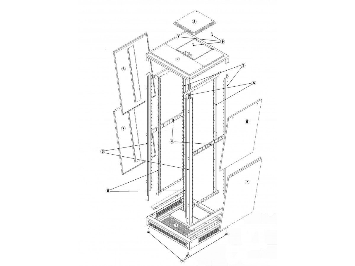 Напольный телекоммуникационный шкаф стандарта 19 дюймов предназначен для размещения современного серверного оборудования и организации коммуникационных сетей. Корпус шкафа выполнен из металла и обладает степенью защиты IP31 (с возможностью повышения до IP55), что предохраняет внутреннее пространство от попадания пыли и влаги, поступающих вертикально. Конструкция шкафа является сборно-разборной, облегчая транспортировку и последующую сборку на месте установки. Высокая грузоподъёмность до 1000 кг позволяют устанавливать тяжелое и крупногабаритное оборудование без риска повреждения каркаса. Полезная глубина шкафа составляет 406 мм, обеспечивая комфортное расположение крупных устройств и свободное подключение кабельной инфраструктуры.